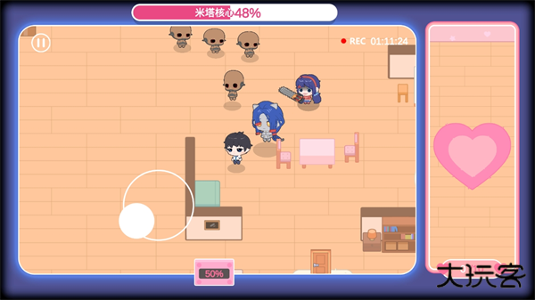 3、救援进度:拾取场上的道具可以增加顶部的救援进度条,当进度条满后米塔就会被转移到右侧安全区域。