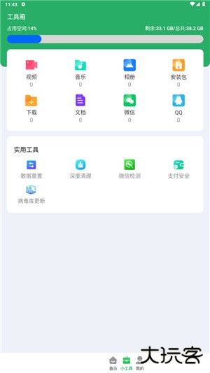 小工具界面可以管理用户手机中的文件,还有很多使用小工具供用户使用,比如: