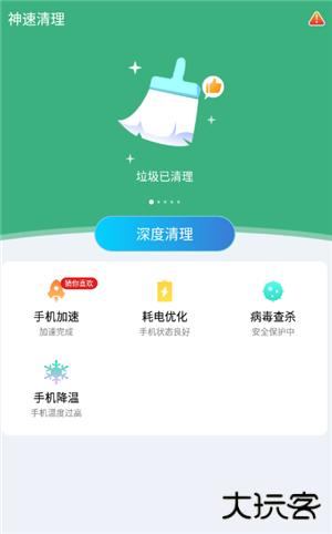 体积小,功能强,高效清理手机中的垃圾文件,释放内存,提升手机速度,有效地解决手机使用过程中的内存不足,卡顿死机,高耗电,病毒骚扰等问题。