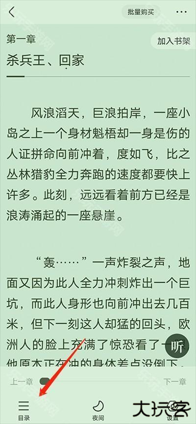 2、点击进入小说阅读,点击左下角目录,如图所示