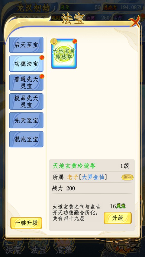 4、如果对于立了功德的生灵赏赐法宝并对其升级;