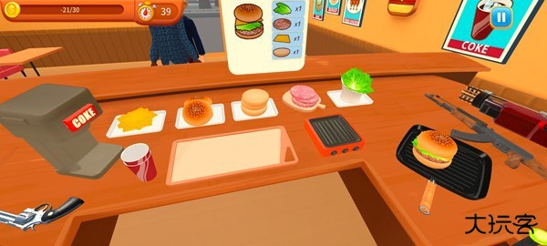 4、玩家需根据顾客的要求来制作汉堡;