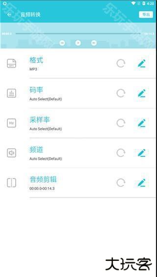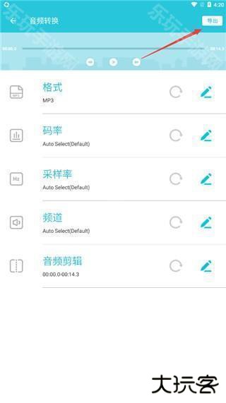 3、之后我们对其修改格式、频道、码率、采样率以及音频剪辑;