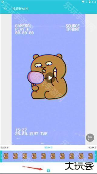 2、点击视频转换mp3功能;选择好你需要转换的片段;