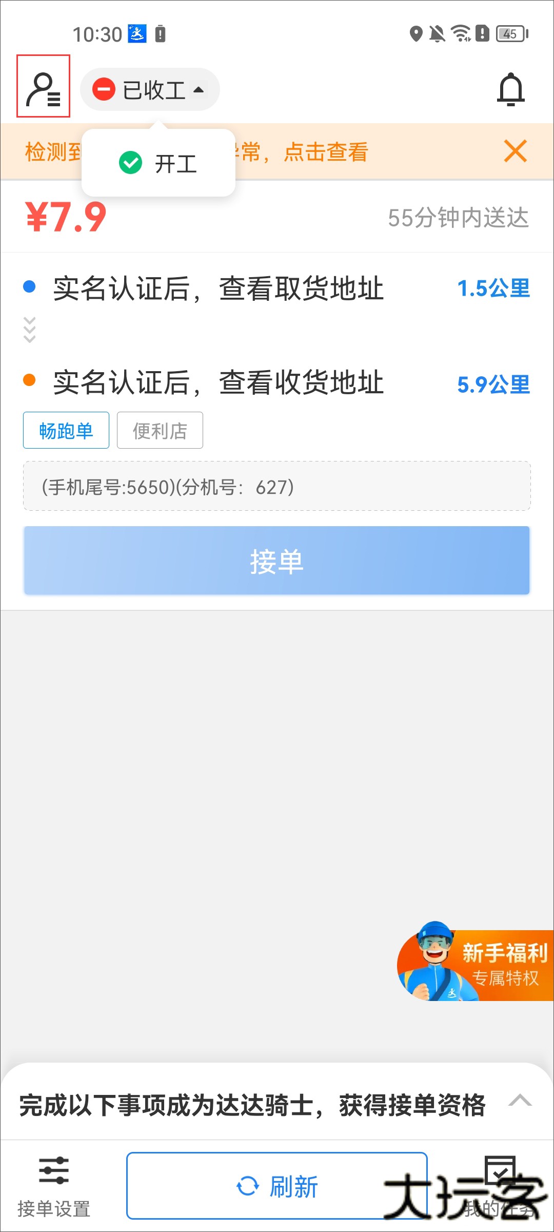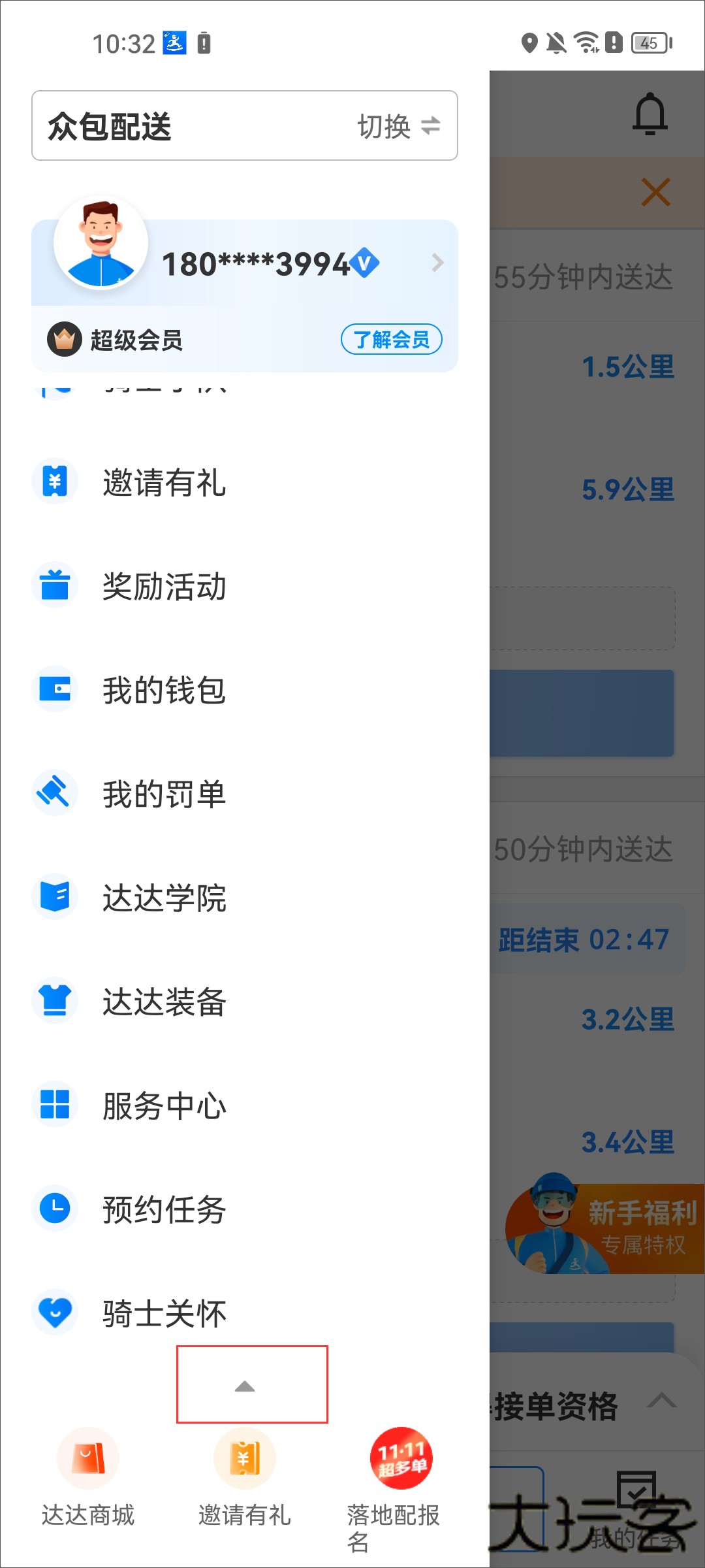 下载进入达达骑士版app,输入手机号获取验证码即可登录