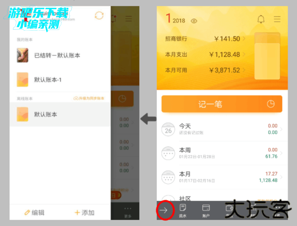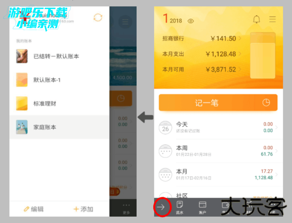 检查二:打开旧手机的随手记APP首页-左下角箭头-账本侧滑页