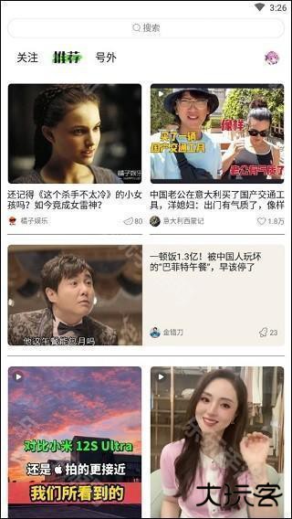 目前,该应用的页面布局比较简单,分为“关注”、“推荐”和“号外”三个板块。