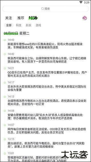 “号外”功能板块则是以实时快讯的形式呈现,会及时推送一些要闻动态,而且还细分出科技、影视、游戏等3个小模块。