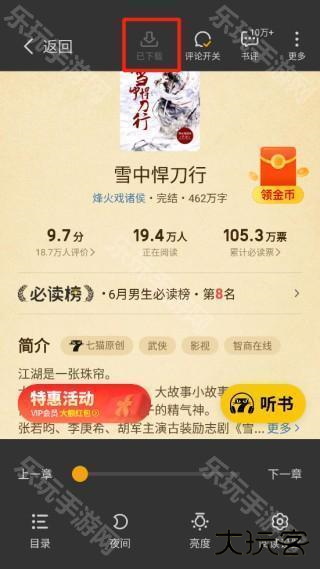 6、显示下载完成后即可离线观看小说了