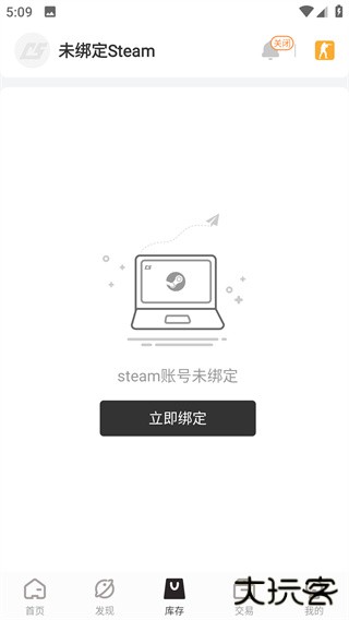 4、跳转至库存界面,然后前往绑定steam账号;
