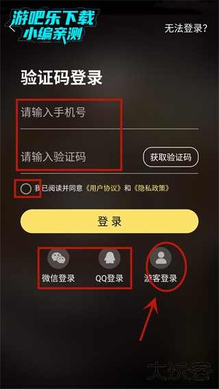 2、初次使用软件可以使用手机号验证码进行注册/登录,同时还支持微信、QQ一键授权登录,若你想先体验一番可以选择游客登录哦!