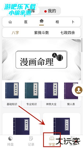 5、在学堂栏可以学习各种命理知识,新手快速入门,更有漫画入门教学,轻松学习。
