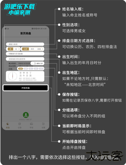3、进入软件后默认为排盘页面,在此页面可以输入自己的个人信息开始排盘。