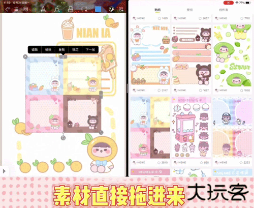 2、在制作时直接将超萌鸭app上的素材直接拖进千本笔记即可