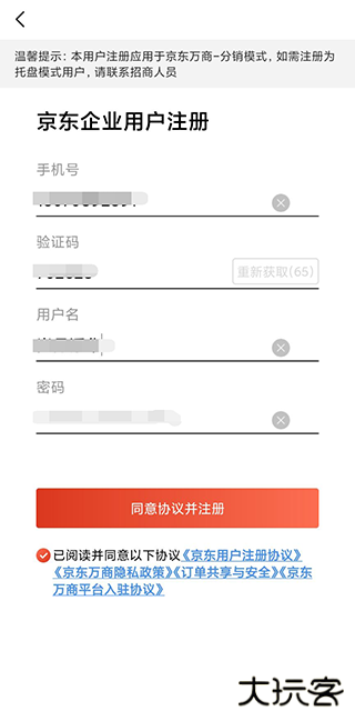 4、填写用户名和设置您的密码,点击同意协议并注册;