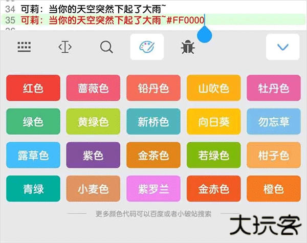 音乐盒提供了20种较为常用的颜色代码,只需要将光标点击到歌词最右边,然后点击一下颜色块 就能够快速的对歌词进行染色