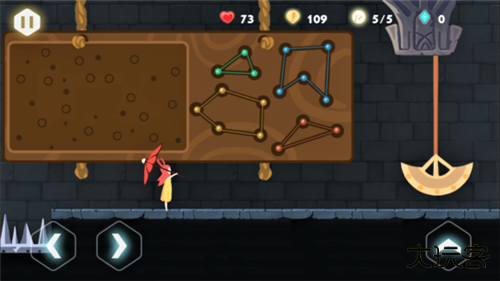 2、飞行跑酷:带着你的小红伞飞起来吧!你可以在飞行过程中收集各种水晶,它们是你能够开通下一篇章的重要道具;
