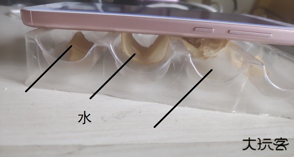 方案二(零成本):找个口服液或类似的胶架,按下图,先用纸巾将所有凹槽连起来,再用另一张直接贴手机背面,药瓶的槽灌水,如此水量大,且有热传递循环,加个风扇效果更佳。