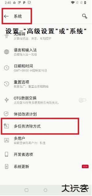 2、设置——系统/高级设置——多任务清除方式——普通清除;