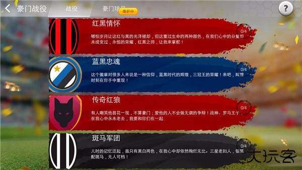 参与豪门战役达成条件可以获得宝石和很多稀有道具,完成系列任务并达成条件后,可以邀请传奇巨星加盟球队!