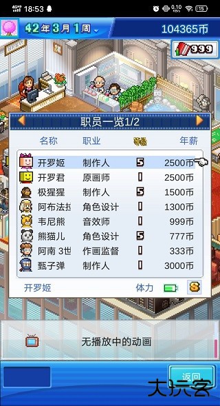 动画制作物语凭借经典的游戏画风和游戏玩法,在同类游戏中脱颖而出。游戏采用复古像素美术,从角色的形象,到办公室的场景,都非常有趣,搭配背景音乐,主打给玩家带来沉浸式的创作体验。游戏以经营养成为核心玩法,玩家需要合理分配资金,招募员工,建造设施来打造出满足观众喜好的作品。对于喜欢模拟经营的玩家来说,这款游戏非常值得一试。