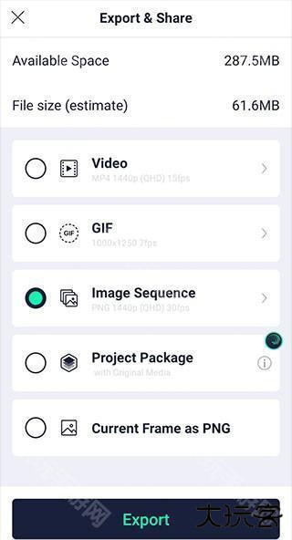 导出任何人都可以使用Alight Motion编辑的视频、GIF或项目包。