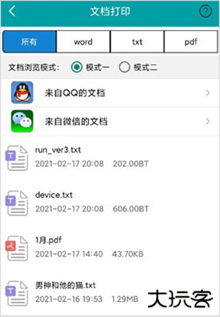 2、目前支持打印Word、TXT、PDF格式,选择要打印的文件。查看文件详情,点击页面右上角的打印图标即可打印。