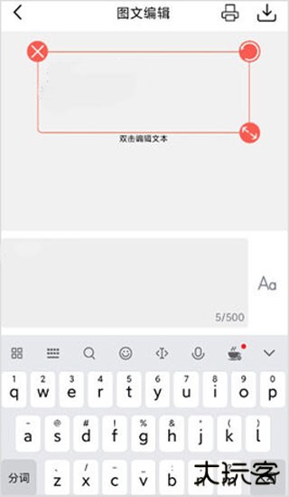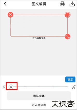 2、这里以图文编辑为例,点击【文字】选项。双击编辑框,输入文本内容,点击输入框右侧的“Aa”移动圆形图标即可调整字体大小。