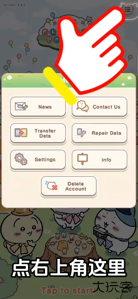 1、进入游戏后,点击主界面右上角的三个横杠图标