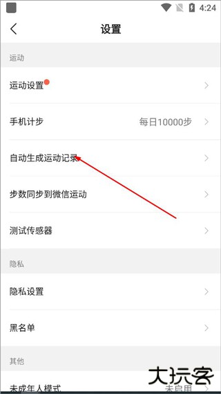 3、开启自动生成运动记录,选择最小生成距离即可;