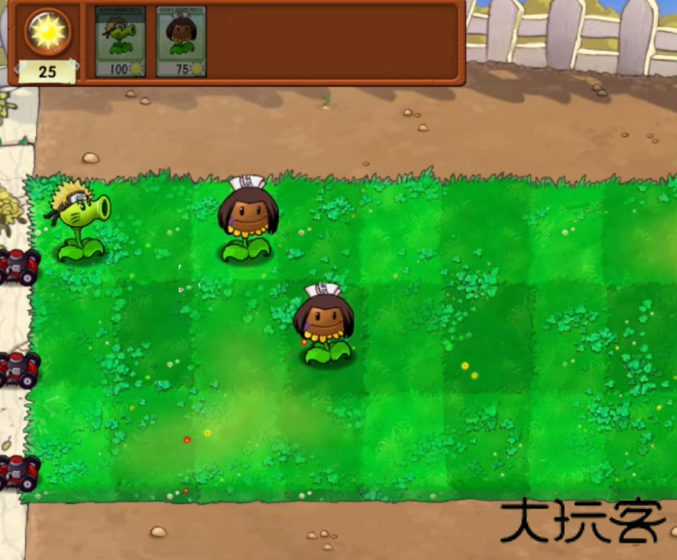1、进入游戏后,优先种植向日葵来积攒阳光资源