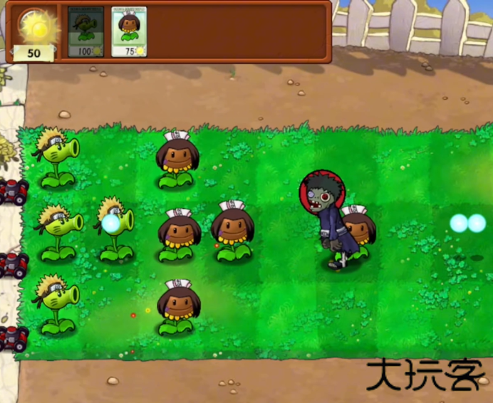 3、僵尸浪潮到来之前需要种好豌豆射手来抵抗