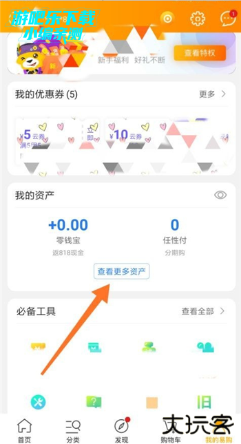 1、首先打开苏宁易购APP,在:我的易购首页,往下滑,找到:我的资产,点击查看更多资产。