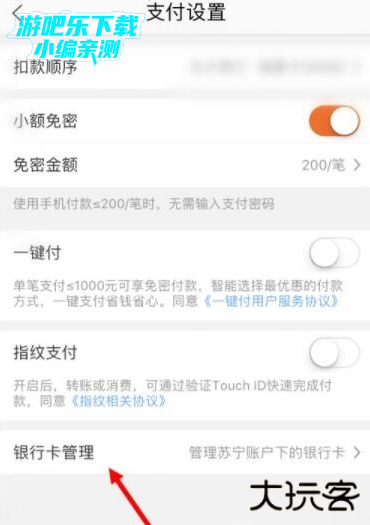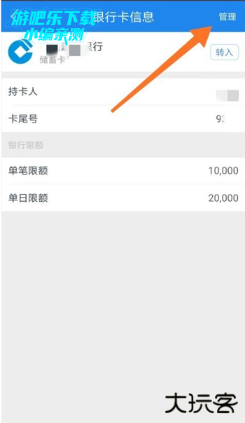 3、进来之后,我们点击管理,然后会出现,需要下载苏宁XX客户端才可以解绑银行卡,如果想解绑银行卡,就去下载苏宁XXAPP。