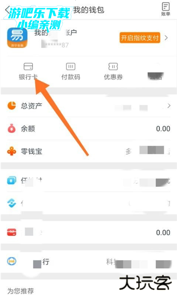 2、进来之后我们可以在左上角看到:银行卡。点击银行卡进去解绑。