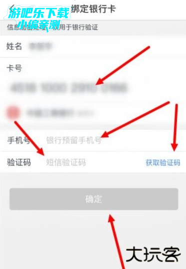 6、在绑定银行卡界面中输入需要绑定的银行卡信息,然后完成验证即可成功绑定银行卡。