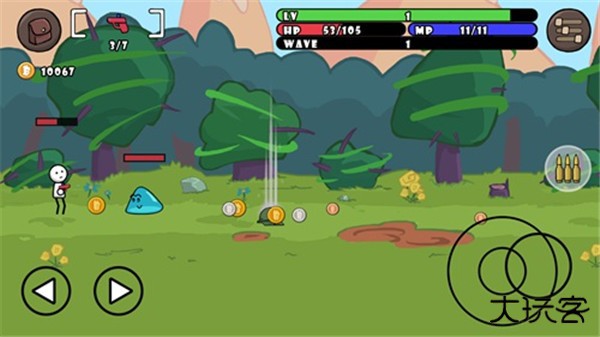 2、在游戏中我们可以看到自己的血量和魔法值,这些都是大家需要注意的,同时在屏幕右侧有一个子弹按钮,这是切换弹夹用的。