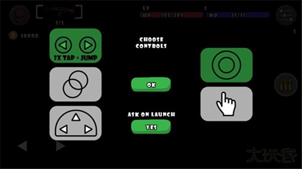 1、进入游戏前,我们需要选择操作模式,游戏为我们提供了三种操作模式,分别是按钮控制移动和摇杆控制移动,同时在攻击上还可以选择点击屏幕攻击或者摇杆控制攻击,小编个人是推荐点击屏幕来攻击。