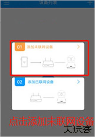 3、打开APP进入设备列表页面点击右上角+号,选择添加未联网设备。