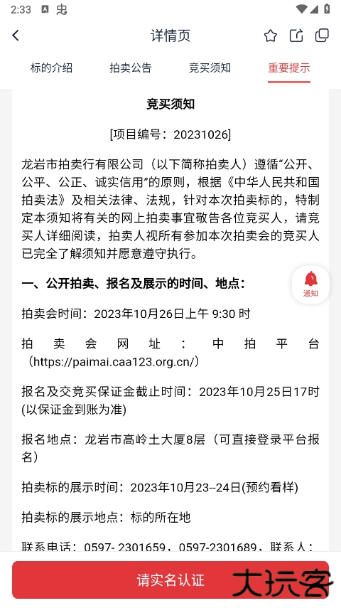 4、注意在参拍之前要详细查看拍卖公告、竞买须知以及重要提示。