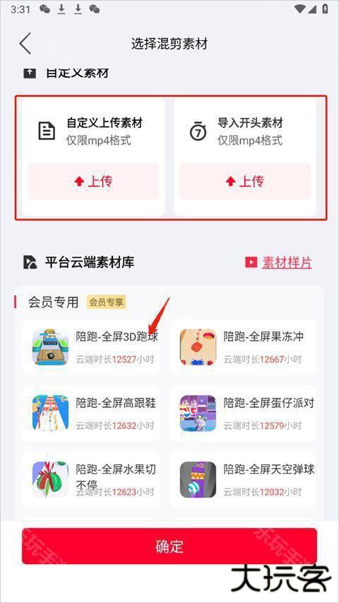 4、然后我们选择自己要上传的素材,也可以在下方使用平台提供的素材
