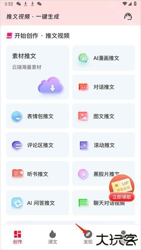 2、在创作界面点击要生成的推文种类