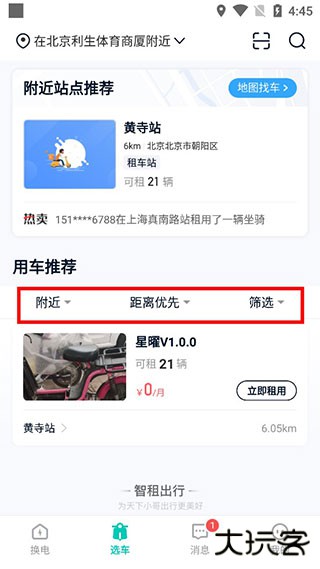 2、挑选距离自己最近的车子,点进去。