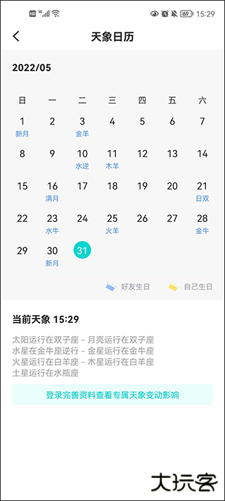 5、软件中还有一个专属的天象日历,例如,在本月的26号,可以显示你的星座在当天会有什么天象发生。