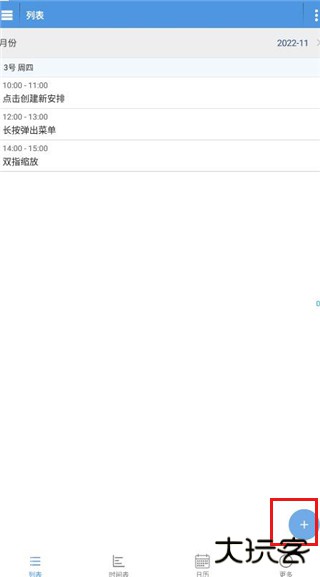 1、打卡软件,如图,点击右下角+号创建新的日程