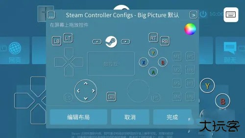 5、连接之后,steam会以大屏幕形式展现,如果你的移动设备连接手柄就可以直接使用手柄开始游玩,如果没有,steam也是准备了一套虚拟的按键供你体验。注意,不能关闭电脑哦。