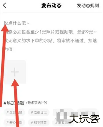 3、上传图片或视频,然后输入内容,最后点击“发布”选项,即可完成操作。