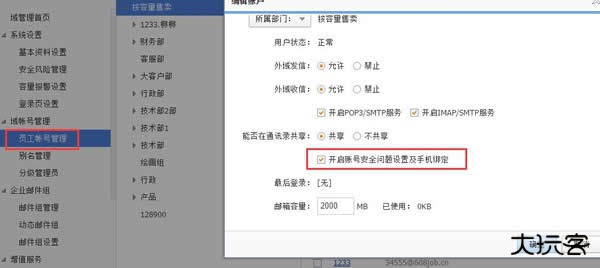 可设定监控帐号与被监控帐号,满足企业对邮箱。