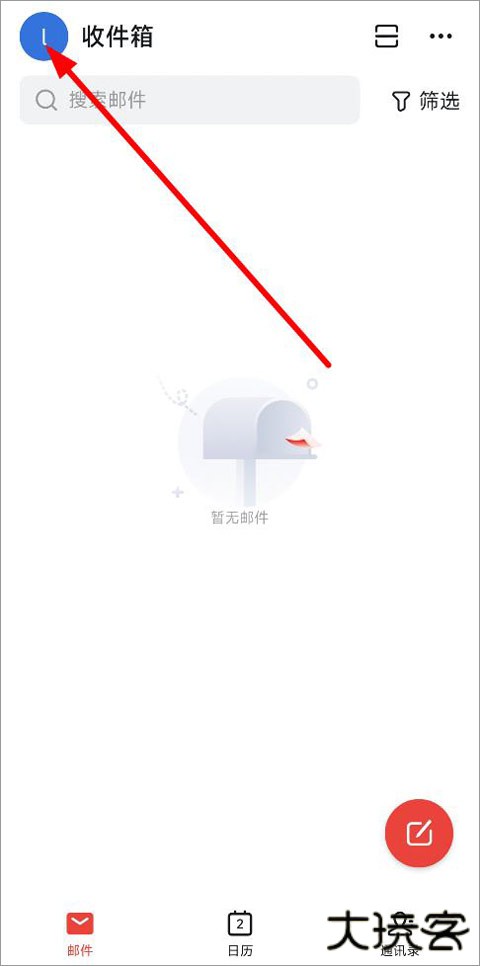 1、打开登录阿里邮箱app,进入邮件页面,点击左上角收件箱打开;