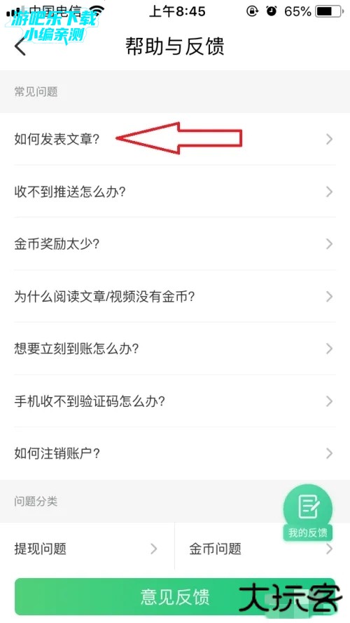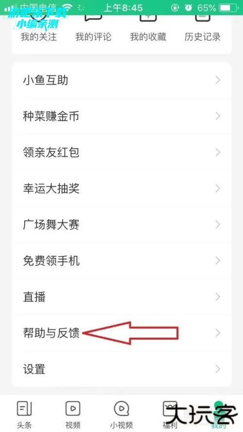 在趣头条以下页面,点击【帮助与反馈】